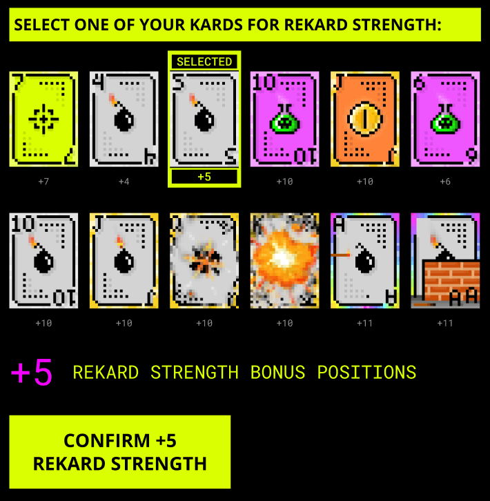 **REKARD** **STRENGTH** allows your **TR00PS** to gain bonus spots on the Grid, making it more likely to find **PINK EYES**. \